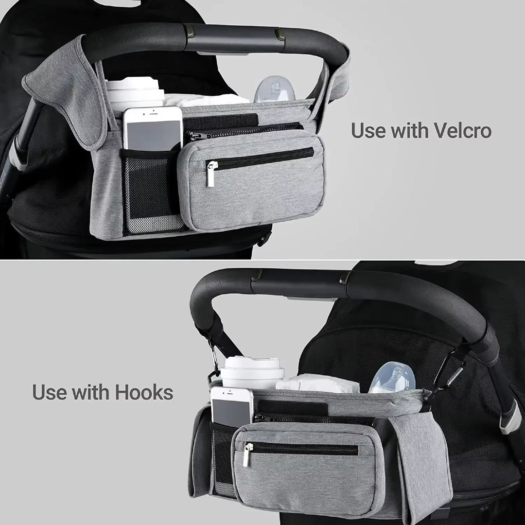 Baby Stroller Organizer – Diaper, Bottle & Phone Holder - Grey